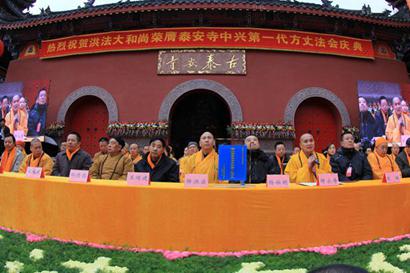 2014年12月10日,佛历2558年10月19,四川省都江堰青城山泰安寺住持洪法法师荣升为泰安寺中兴第一代方丈,中国佛教界诸山长老,以及缁白二众千余人,云集泰安寺,共同迎请洪法法师升座。 升座法会于