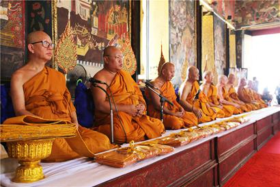 泰国僧众诵经祈福,愿法轮常转,中泰两国法谊长青。摄影:顿俊