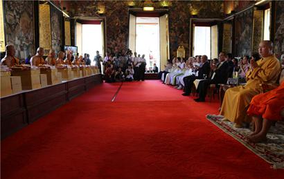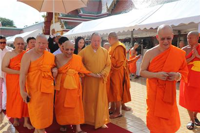 出席此次升座盛典的领导嘉宾有: 中国佛教协会副会长、海南省佛教协会会长、深圳弘法寺方丈印顺大和尚,泰国代僧王颂德•帕摩诃拉查曼克拉赞长老,副僧王帕•蓬玛西提长老,僧伽委员会诸山长老及所有委员,泰国前总理英拉,泰国前总理颂猜, 泰国前副总理加都隆,前副总理利哇·堪木隆,前副总理苏达拉,国王秘书长阿萨·萨达新, 泰国前国会主席乌基,国家监督委员会披实等政要以及本焕学院执事培训班全体法师代表。(文:南海佛教图:铂净)![]()