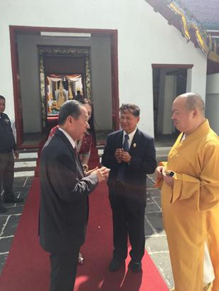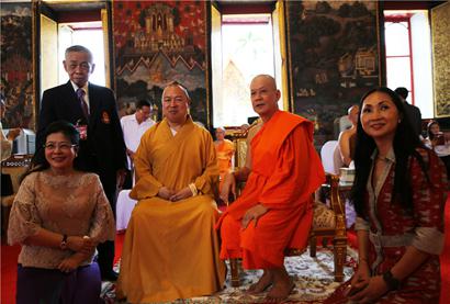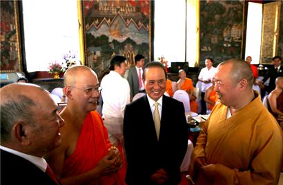 泰国国王秘书长阿萨•萨达新(右二)与印顺大和尚亲切交谈。摄影:顿俊