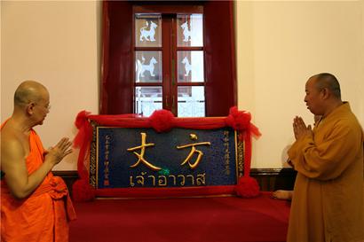 印顺大和尚赠送帕•蓬玛西提长老手书“方丈”牌匾,以示隆重。摄影:顿俊