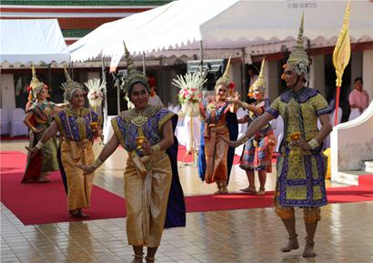 当地时间下午4时许,金山寺佛殿佛日放光,经声远扬,庆典暨升座仪式正式举行。泰国政教学三界齐聚金山,随喜长老升座狮吼。信徒们穿着节日的盛装,到佛寺礼拜,人们跳起欢乐的舞蹈,向佛教界长老与尊贵的客人们致以最热烈的祝贺。