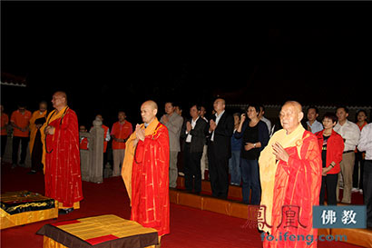 主法大德共同主法,恭送本老舍利启程。(图片来源:凤凰佛教 摄影:顿博)