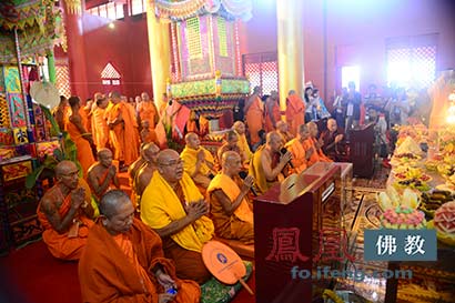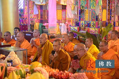 崇化法师带领汉传佛教法师诵经(图片来源:凤凰佛教 摄影:勐巴拉西)
