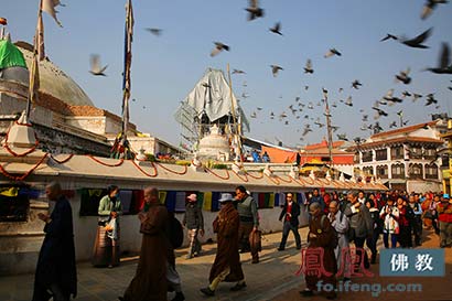 2015年11月8日,广州参访团参礼博达纳特大塔。(图片来源:凤凰佛教 摄影:妙传)