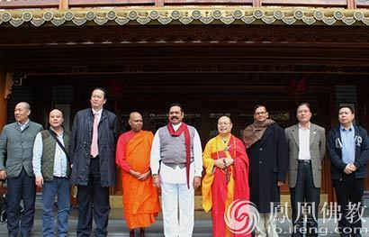 耀智大和尚和马欣达•拉贾帕克萨前总统及随行人员合影。(图片来源:凤凰佛教 摄影:如本法师)