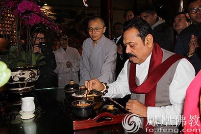梵音缭绕,马欣达•拉贾帕克萨前总统虔诚上香。(图片来源:凤凰佛教 摄影:如本法师)