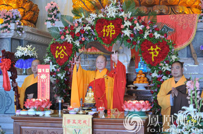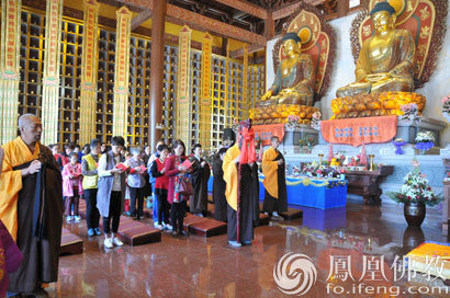 法师及家人眷属为新人祈福(图片来源:凤凰佛教)