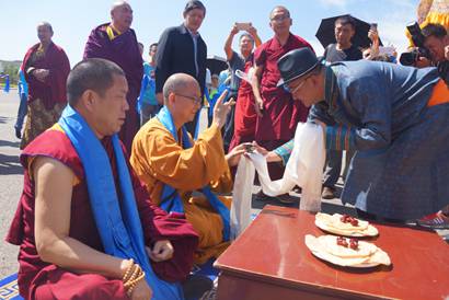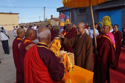 乌拉特后旗东升寺以传统礼仪热烈欢迎学诚法师一行(图片来源:中国佛教协会 摄影:陈星桥)
