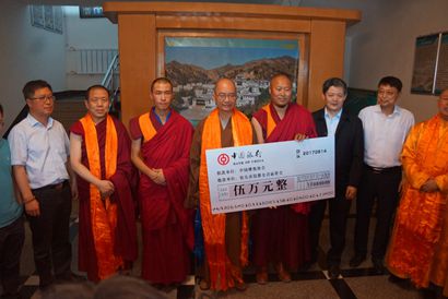 中国佛教协会向昆都仑召捐赠5万元善款仪式在五当召举行(图片来源:中国佛教协会 摄影:陈星桥)