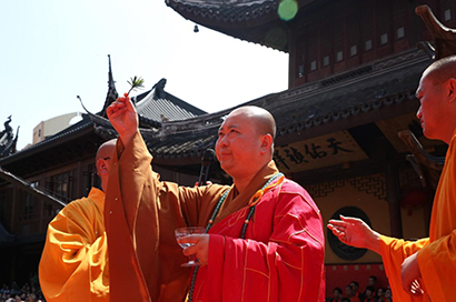 全国政协委员、中国佛教协会副会长、上海玉佛禅寺方丈觉醒大和尚率众拈香礼佛。(图片来源:凤凰佛教 摄影:李保华)