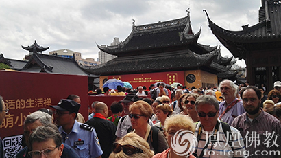 9月2日,上海晴空万里,佛光普照,大殿平移现场人很多,但井然有序。(图片来源:凤凰佛教 摄影:李保华)