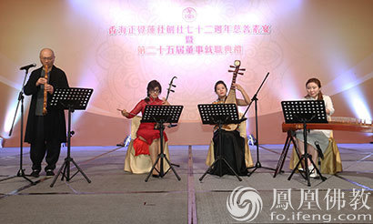 新一届董事会的任期将由2017直至2020年。香海正觉莲社还非常有幸邀请到著名笛箫演奏家谭宝硕先生,国家一级演员、著名青年歌唱家周咏琁老师,中国著名二胡演奏家、太极琴侠陈军老师,周旋艺术中心的老师及小艺术家等作助兴演奏。伴随精妙演出,宴会现场真可谓星光熠熠,高潮迭起,精彩连连。当晚还进行了“正行觉念嘉年华手机摄影比赛”颁奖典礼。