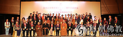 主礼嘉宾与香海正觉莲社全体董事合影(图片来源:凤凰佛教 摄影:李杰飞)