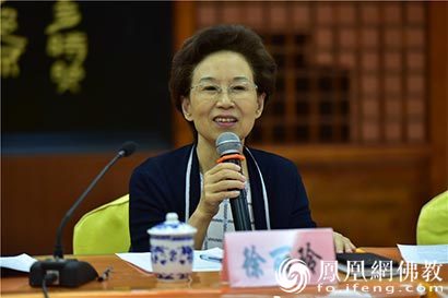 扬州广播电视电影协会会长徐丽玲女士介绍“世遗雕版•藏经院”项目内容(图片来源:凤凰网佛教 摄影:季利)