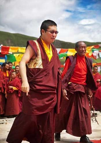 寺主丹增绒布仁波切与老藏医格桑巴久(右)(图片来源:中国民族报 摄影:张玉皎)