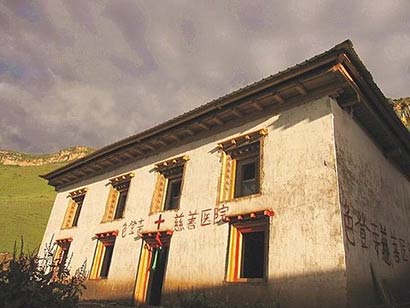 慈善医院建于2010年,现有规模并不大,占地面积约150平方米,分为“输液室”、“藏医院”和“药房”。目前有一位年轻的藏族医生诊病,一位老藏医时常帮忙接待病人。医院虽小,却发挥了很大的作用。据年轻的藏族医生说:“每天来就诊的患者很多,我们连吃饭的时间都很难保证。”在问到平时诊病有没有固定的时间时,他说,“我们几乎每天早上都被患者敲门招呼去诊病,还经常到周边的乡镇出诊,一去就是一整天。”