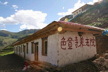 色登寺慈善养老院与慈善医院相隔不远,目前共有15间房,为年老无依者提供生活所依。养老院的老人平均年龄在60岁到70岁,一般都来自距离色登寺较远的地方,年老且体弱多病者居多。寺院每月给每位老人发200元作为生活补贴,并发放衣服,还提供茶叶、酥油和青稞。一位住在养老院的老人说:“寺院里的讲经师傅每个月的生活费也只有150元,而活佛给我们的生活费是200元,我非常知足和快乐。”