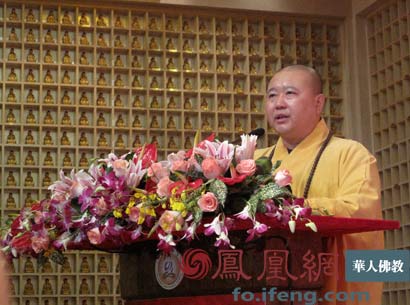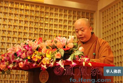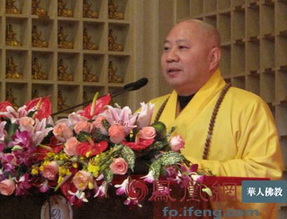 中国佛教协会副会长,上海佛教协会会长,上海玉佛禅寺方丈觉醒法师致辞。(图片来源:凤凰网华人佛教 摄影:印媛)