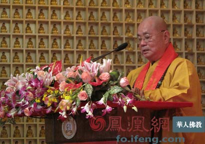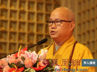 台湾中国佛教会理事长圆宗长老代表台湾佛教界发言。(图片来源:凤凰网华人佛教 摄影:印媛)