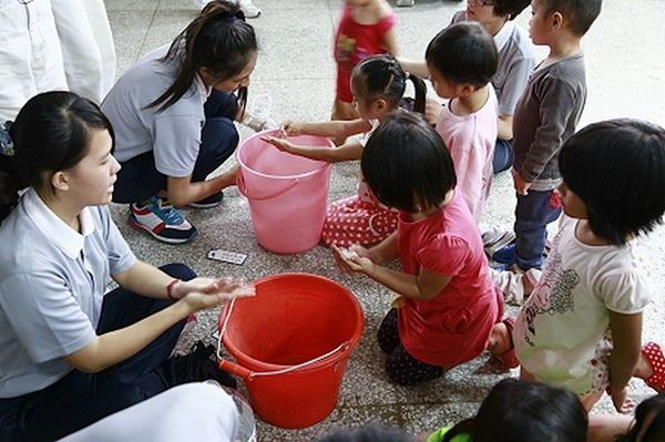 慈济志工在花莲县秀林乡水源村原住民部落推动资源回收一年多,10月4日特地举办感恩茶会,感恩平常在小区做回收的村民,并接引乡亲对慈济有更深入的了解。志工设计闯关游戏让小朋友学习环保观念;慈济大学社工系学生让小朋友以有限的水洗手,体验水资源的珍贵。 日期:2014/10/04 地点:台湾花莲县秀林乡水源村活动中心 摄影者:刘鸿荣