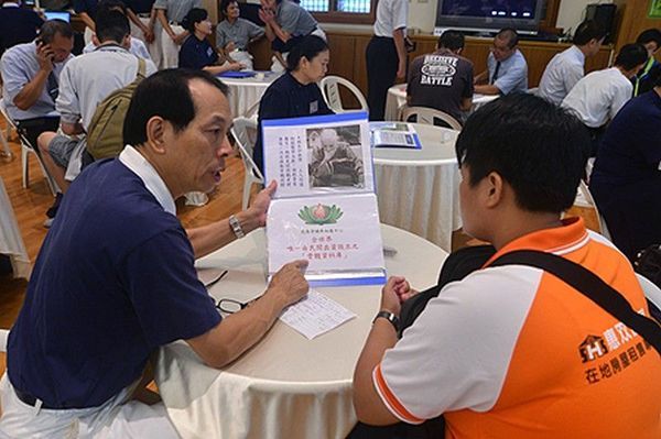 10月11日,慈济志工于埔里联络处举办骨髓捐赠捐髓验血活动,民众纷纷前来响应加入救人行列。解说区,志工向民众说明骨髓捐赠的意义及造血干细胞的捐赠过程。 日期:2014/10/11 地点:台湾南投县埔里镇埔里联络处 摄影者:潘常光